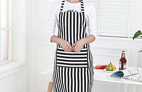 Cuisine + Style Canvas Retro Lovely Comfortable Classic Cute Flirty Fashion Women's Kitchen Apron Cooking Apron Baking Apron with Convenient Pockets for Ladies Girls Wife Daughter (Stripes)