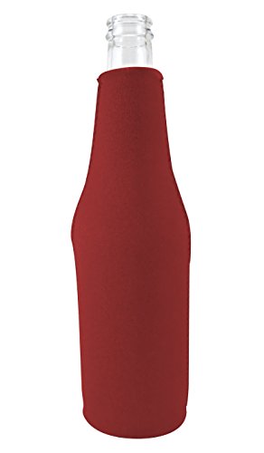 Blank Neoprene Zipper Beer Bottle Coolie with Full Bottom (1, Burgundy)