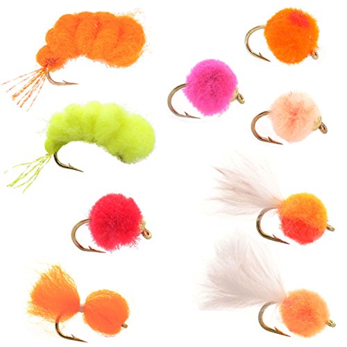 The Fly Fishing Place Sucker Spawn, Sperm Flies and Bead Head Glo Bug Egg Fly Assortment - Collection of 9 Roe Fly Fishing Flies - Hook Sizes 10 and 12-1 Each of 9 Fly Patterns
