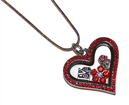 Red Heart Floating Locket – Love Theme Glass Necklace with 20 Inch Snake Chain