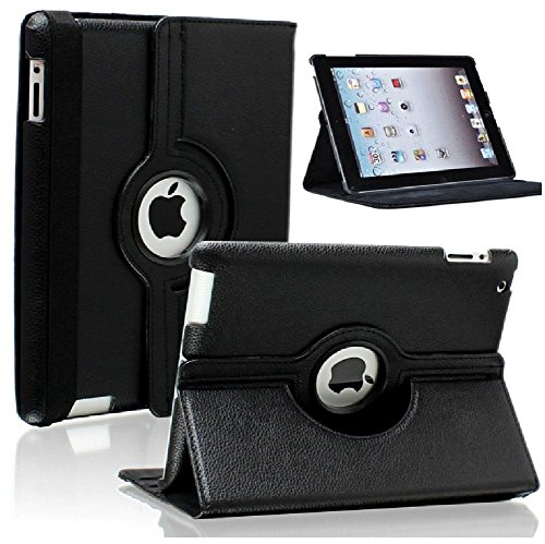 SPJ: Apple iPad 2 3 4 Case 360 Degree Rotating Stand Smart Cover for iPad 2 3 4th Generation with Retina Display - Black