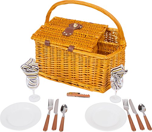 Trademark Innovations 17" Striped Lined Wicker Picnic Basket with Wineholder