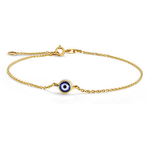Turkish Simple Minimalist 14K Real Yellow Gold Blue Evil Eye Charm Bracelet For Teen For Women With Extender