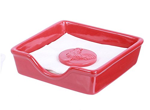 Ceramic Napkin Holder w/Rooster Weight - White or Red (Red)