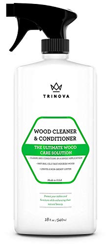Wood Cleaner, Conditioner, Wax & Polish - Spray for Furniture & Cabinets - Removes Stains & Restores Shine - Wax & Oil Polisher - Works on Stained & Unfinished Surfaces - 18 OZ - TriNova