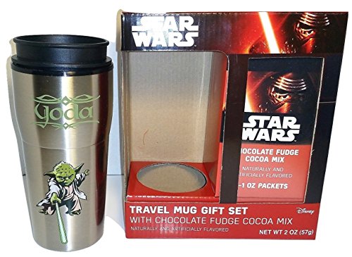 Star Wars Yoda 12oz Stainless Steel Travel Mug with (2) 1oz Packets of Hot Fudge Cocoa