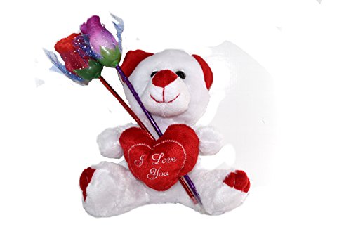 I Love You Red and White Teddy Bear with Two Ink Pen Roses,Plush:TB5