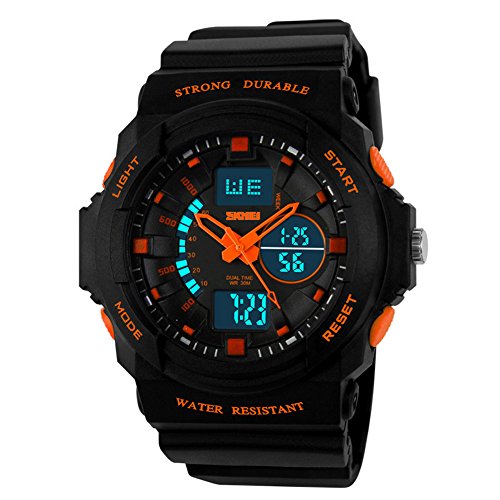 Aposon Mens Dual Time Outdoor Digital Analog Quartz Waterproof Wrist Sport Watch with Electronic LED Display, 3ATM Water Resistant (98ft 30M), Back Light, Alarm, Military 24H Time - Orange