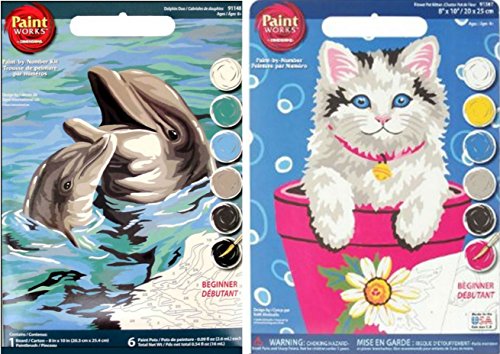 Paint by Number Kit Two-pack for Beginners, Dolphin Duo and Flower Pot Kitten