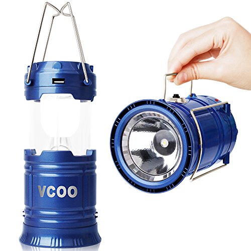 VCOO Camping Lantern, Solar Rechargeable LED Camp Light & Hand Held Flashlight, Collapsible Outdoor Lamp with Built in Rechargeable Battery