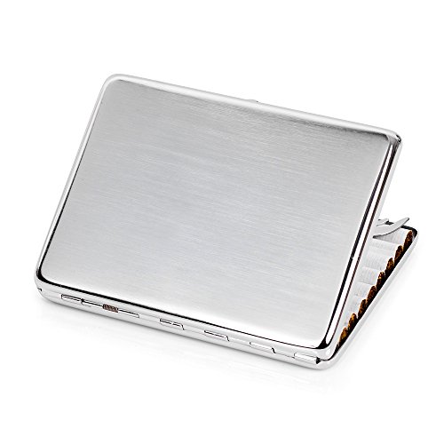 Brushed Silver Pure Copper Metal Cigarette Case Holder Box Holds 9 Cigarettes for 100's