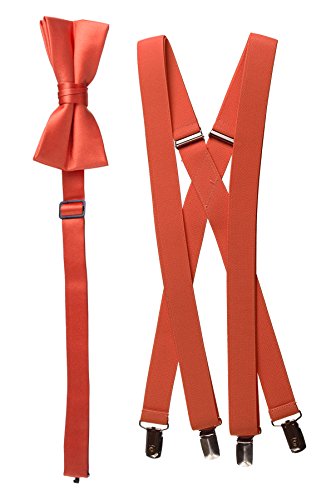 Bow Tie and Suspender Set Combo in Men’s & Kids Sizes (48" Men's, Salmon)