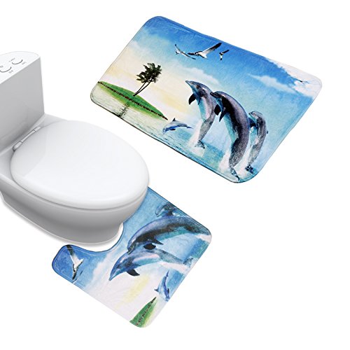 JILLBAN Eiffel Tower Flannel Mat Set Toilet Cover Set Non Slip Bathroom Carpet Rug (2) (1)