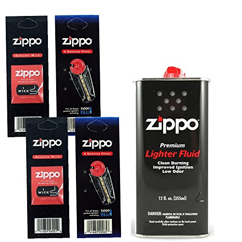 Zippo Gift Set - 12 Fl.oz Fluid Fuel and 2 Wick Card & 2 Flint Card (12 Flints)