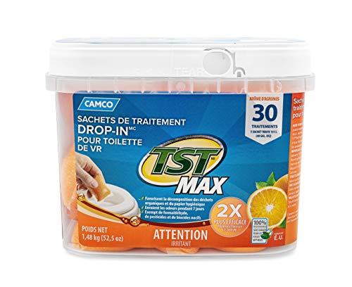 Camco TST Ultra-Concentrated Citrus Scent RV Toilet Treatment Drop-Ins, Formaldehyde Free, Breaks Down Waste And Tissue, Septic Tank Safe, Treats up to 30 - 40 Gallon Holding Tanks (30-Pack)