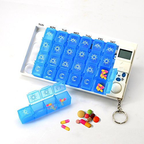Beyoung® 7 Day Weekly Digital Pill Organizer Pill Planner Pill Box Medicine Case w/ 4 Timer Alarm Reminder for Medications Pills Supplements Vitamins