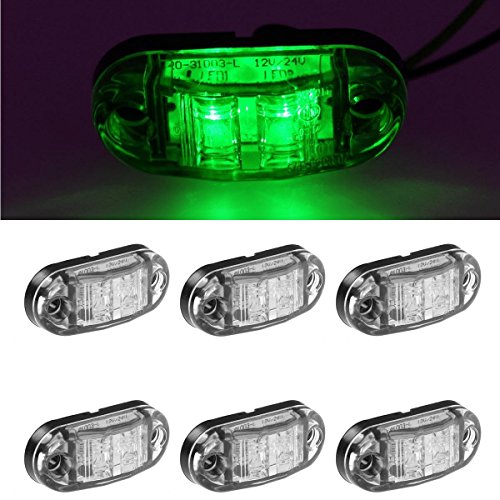 Partsam 6x Oval 2.5" Side Marker Light Parking Light 2LED Sealed Green Light Clear Lens