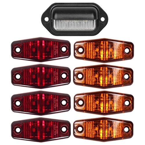 Partsam 12V Led Marker Lights Kit, White LED License Plate Light Convenience LED Courtesy Light Door Dome Cargo Step Lamp + Amber/Red Led Side Fender Marker Clearance Lights Boat Trailer Lights