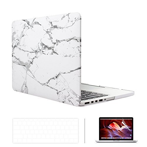 ICE FROG Slim Rubberized Plastic Hard Matte Frosted Case with Soft TPU Keyboard Skin and HD Screen Protecor for Macbook Pro 13" - Marble White