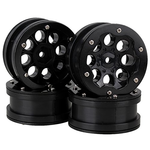 BQLZR 54mm Dia Black Plastic 8 Holes Wheel Rim with Black Aluminum Alloy Beadlocks for RC 1:10 Rock Crawler Pack of 4