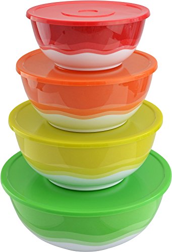 Surpahs Superior Nested Mixing & Prep Bowl Set of 4 Bowls w/Color Matched Complementary Lids [Improved]