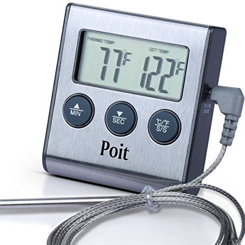 Poit Digital Grill BBQ Oven Meat Thermometer/Food Cooking Kitchen Timer, Stainless Steel, Instant Read