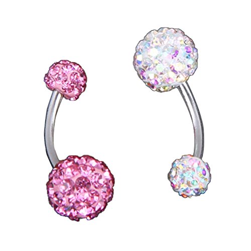 Rosenice Belly Button Anillos Anillos 2pcs Crystal Belly Bar Mujer Stud