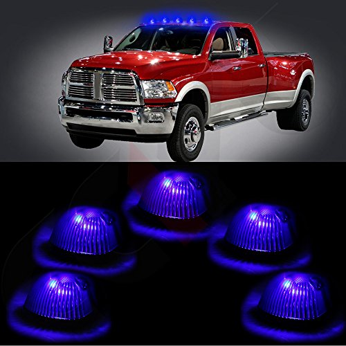 cciyu QTY(5) Black Smoked Cab Roof Top Marker Running Lamps w/Blue LED Light Bulbs Replacement fit for Truck Pickup 4x4 SUV 94-98 Dodge