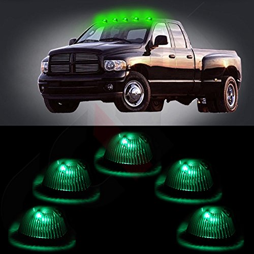 cciyu Replacement fit for 94-98 Dodge Ram 2500 3500 Black Smoked Cab Roof Top Marker Running Lamps w/Green LED Light Bulbs(5 Pcs)