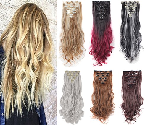 8Pcs 17 24 inches Wavy Curly Full Head Clip in Hair Extensions 18 Clips Women Lady Hairpiece