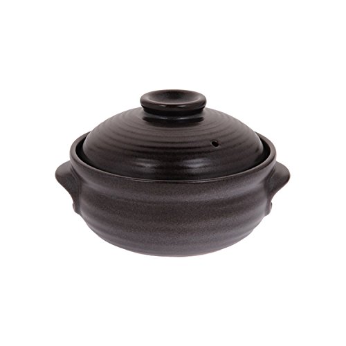 Korean Stone Bowl (Dolsot),Sizzling Hot Pot for Bibimbap and Soup - Premium Ceramic (With Lid) 6.8" X 4.7"