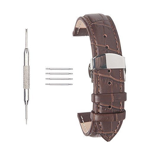 ACUNION™ Cowhide Leather Watch Strap Push Button Butterfly Deployment Buckle Watch Black Brown (22mm, Brown)
