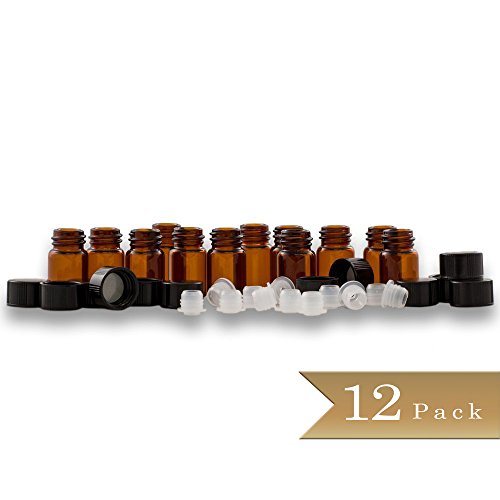 Set of 12 - 5/8 Dram / 2 ml Amber Glass Vials with Orifice Reducer and Black Phenolic PV Lined Caps