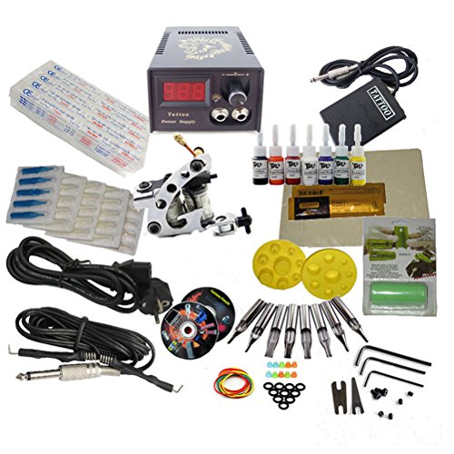 HoriKing Tattoo Supply Beginner Complete Tattoo Machine Kit One Gun Tattoo Ink Power Supply for Liner Shader Silver Supply