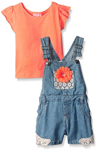 Little Lass Baby Girls' 2 Piece Shortall Set Corsage Crochet, Neon Orange, 12 Months
