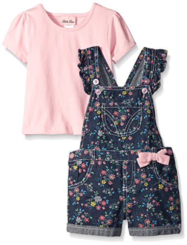 Little Lass Girls 2 PC Shortall Set Flutter Straps, Pink, 6/9 Months