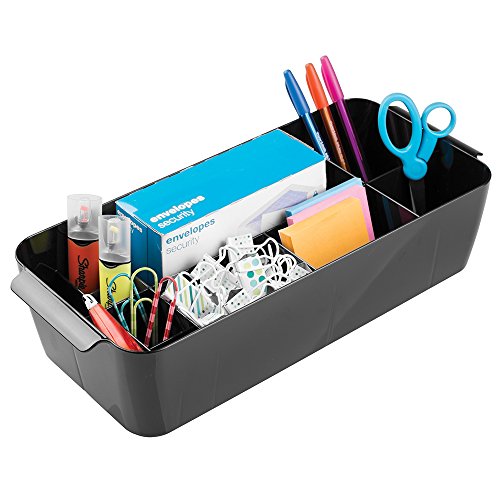 mDesign Office and Desk Organizer Caddy, Storage for Paper Clips, Push Pins, Pens, Pencils - 10 Compartments, Black