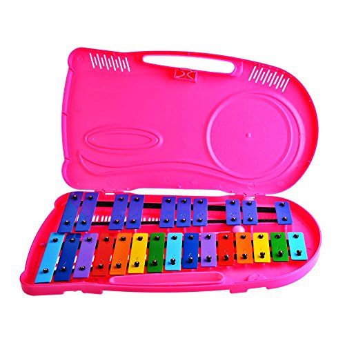 Rolimate 25 Notes Chromatic Glockenspiel Xylophone Instrument with Case - Notes Engraved Into Metal Keys(rose red)