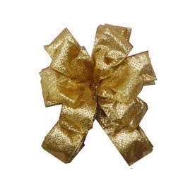 Holiday Living Large Metalic Gold Wired Ribbon 11" Bow Tree Topper with 16 Loops and Four 18" + Four 40" Tails