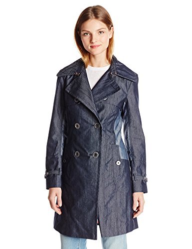 Nanette Lepore Women's Elegant Twill Denim Double Breasted Trench Coat