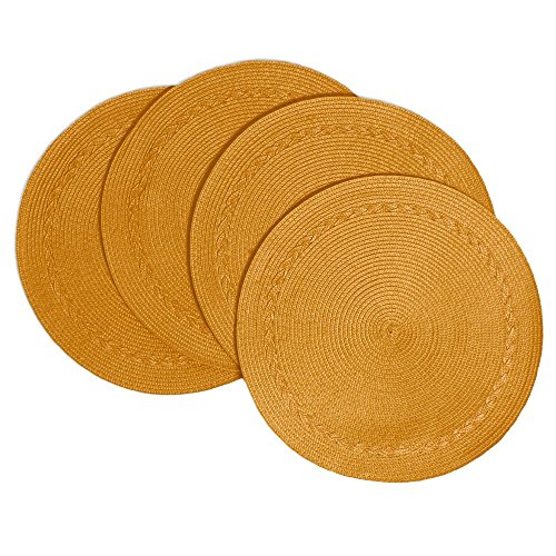 Benson Mills Braided Edge Round Placemats (Set of 4), 15 Inch, Stone
