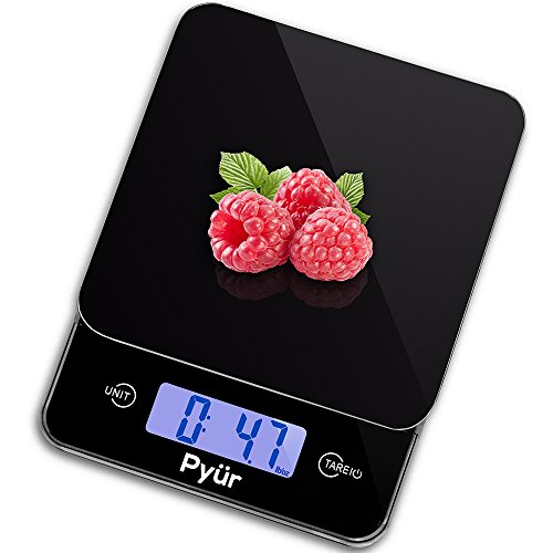 Pyür 11lb/5kg Capacity Touch Digital Multifunction Kitchen Food Scale, Accurate Weight Watchers & Portion Control, Precision Tare Button, Elegant Black, Sale!