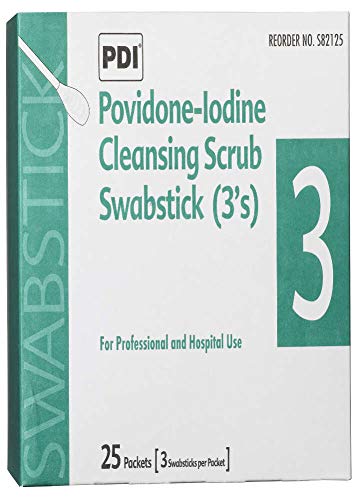 PDI PVP Iodine Scrub Swabstick Skin Antiseptics, 3's - 4 Inch, S82125, 25 Packets Per Box = 75 Total Swabsticks