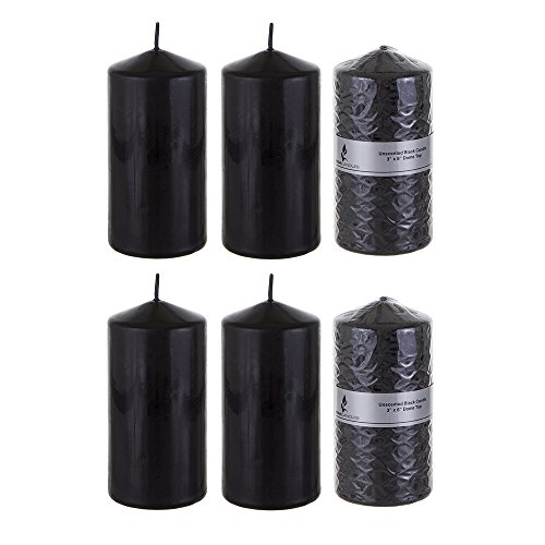 Mega Candles - Unscented 3" x 6" Round Pillar Candle - Black, Set of 6
