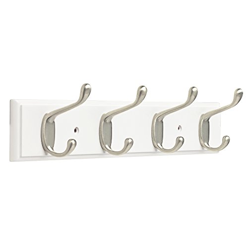 Franklin Brass FBHDCH4-WSE-R, 16" Hook Rail / Rack, with 4 Heavy Duty Coat and Hat Hooks, in White & Satin Nickel