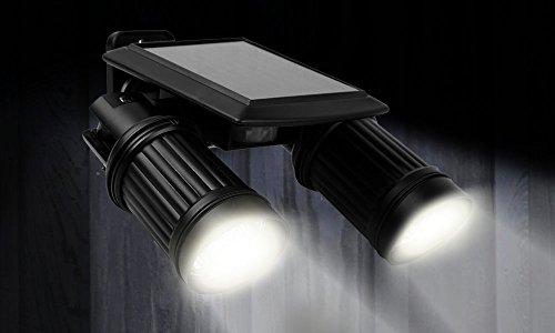 iMounTEK Solar Motion Sensor Floodlight (Twin Head, 14 Bright LED Lights, Weatherproof, Flexible Rotation, Solar Charged, Automatic, Mounting Bracket) Walls, Gardens, Lawns, Patios, Etc.- Black