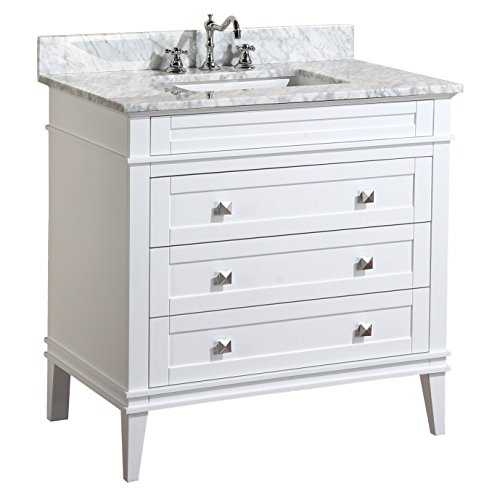 Kitchen Bath Collection KBC-L36WTCARR Eleanor Bathroom Vanity with Marble Countertop, Cabinet with Soft Close Function & Undermount Ceramic Sink, 36", Carrara/White
