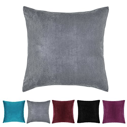 DreamHome 26" X 26" Solid Polyester Velvet Decorative Euro Pillow Cover/Sham - Platinum Gray