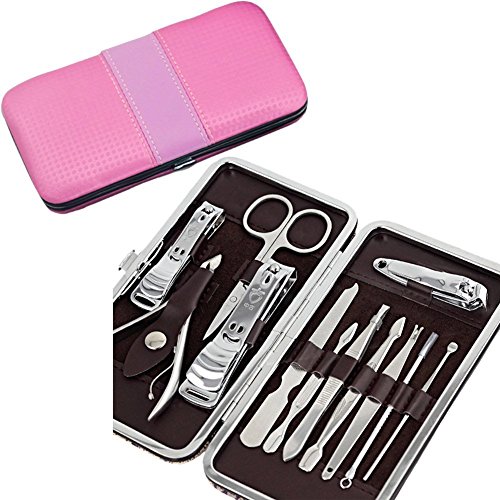 QTcle Pink Leather 12 in 1 Manicure Set - Nail Kit for Women