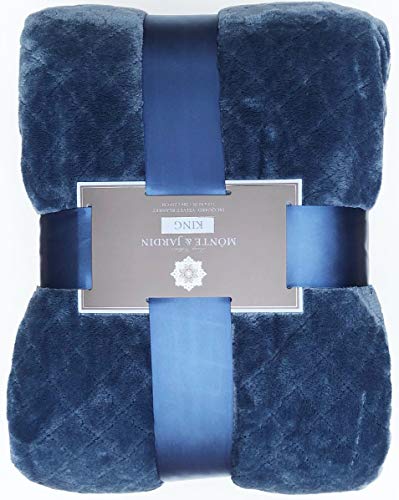 Monte & Jardin Luxury Linens King Jacquard Velvet Blanket 112" X 92"/284cm X 234cm - Blue